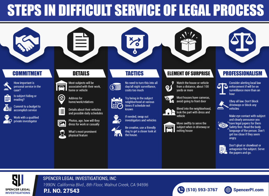 Spencer once found a missing heir to a $7 million estate when no one else could find him. The man was living in someone’s back yard. The address kept popping up but there was never a response at the chain-locked gate or to letters being sent to the house. Even surveillance couldn’t detect any signs of him. One day, Spencer was able to walk around the side of the back yard, call out to the subject and confirm it was in fact the missing heir.
